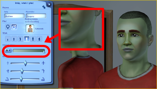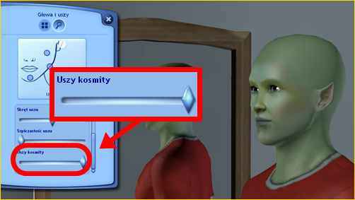 Zupełnie nowe suwaki do tworzenia kosmitów. Możemy dostosować oczy kosmity oraz jego uszy. Trzeba jednak pamietać, że są to jedynie suwaki i ustawienia. Kolor skóry oraz wyżej wymienione suwaki nie dają możliwości stworzenia kosmity. Tej postaci nie będzie też można stworzyć w Stwórz Sima.