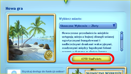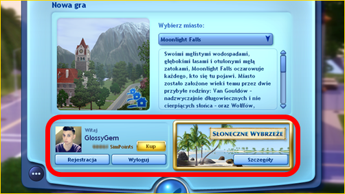 Teraz The Sims 3 Sklep możemy znaleźć już przy wyborze świata, w którym chcemy grać. Oprócz zainstalowanych światów, pojawią się też te ze Sklepu. Są one oznaczone specjalną ikonką pieniądza, a po ich wybraniu pokazuje się przycisk umożliwiający ich zakup.