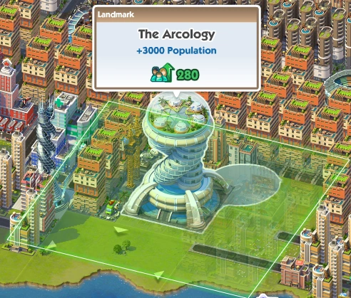 obrazka z Arkologią w simcity nie mogłem znaleźć ale pewnie będzie w jakims filmiku z bety, w każdym razie kształtem przypominało oszkloną strukturę w kształcie jaja na wielkim postumencie 😀
