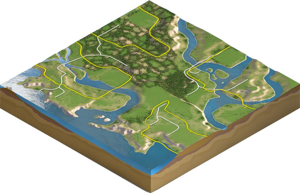 Nie dość że mnóstwo miejsca to jeszcze dużo wody i ciekawa rzeźba terenu. Mam nadzieje że jeżeli chodzi o wspólną zabawę to nie będzie problemu żeby znaleźć sąsiadów dla swojego miasta 😛