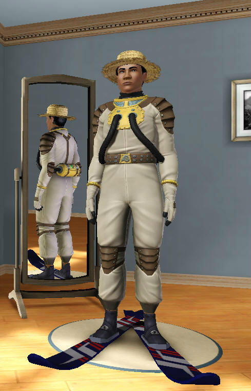 Zaraz zaraz, przecież nawet jeśli przebierzemy Sima w strój to i tak ma dwie nogi, a tu widocznie ma zrośnięte w ogon . :/