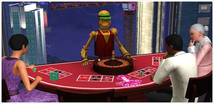 SimGuruTaterTot posłała kolejną podpowiedź jutrzejszego zestawu. Jeśli dobrze zrozumiałem, pojawią się dwa zestawy. Jednym z nich będzie "Zestaw ruletka i podwojenie w pokera". W zestawie tym znajdą się dwa materiały specjalne – stół do pokera i stół do ruletki. Oba są w stylu stoliku do BlackJacka z Kasyna "Szczęśliwy Simoleon". Drugim zestawem będzie kompilacja "Podnieść stawkę" nowych materiałów specjalnych z Kasynem "Szczęśliwy Simoleon". Kompilacja zawierać będzie takie obiekty jak: stolik do BlackJacka, stolik do pokera, stolik do ruletki oraz jednorękiego bandytę. Przypominam, że samo kasyno z dwoma materiałami specjalnymi kosztuje obecnie 1900 SimPointsów, zastanawiam się ile będzie kosztował zestaw z dodatkowymi dwoma obiektami. Tłumaczenie nazw zestawów nie jest oficjalne. Co sądzicie o tej ofercie? Jednym z pierwszych przeglądów na DOTsim było właśnie kasyno. Zobaczcie sami! 🙂