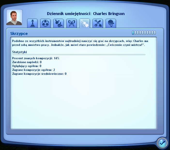 Łucznictwo i gra na skrzypcach to normalne umiejętności, które pojawiają się w dzienniku umiejętności 🙂
