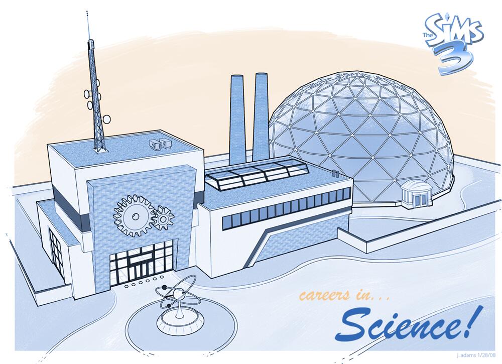 Wracając po niedługiej przerwie do tematyki trzeciej częsci Simów, SimGuruSarah postanowiła zaprezentować nam szkic koncepcyjny centrum naukowego z podstawowej wersji The Sims 3. Jak widać na obrazku, projekt nie jest zbyt skomplikowany… i może dlatego prezentuje się bardzo podobnie do wersji, którą możemy znaleźć w Sunset Valley 🙂 Czy Wasi Simowie często podejmują karierę naukową?