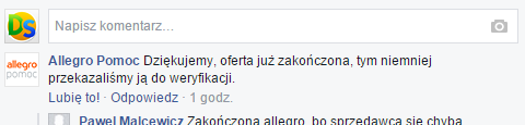 TUTAJ znajdziecie nasz post na tablicy Allegro Pomoc.