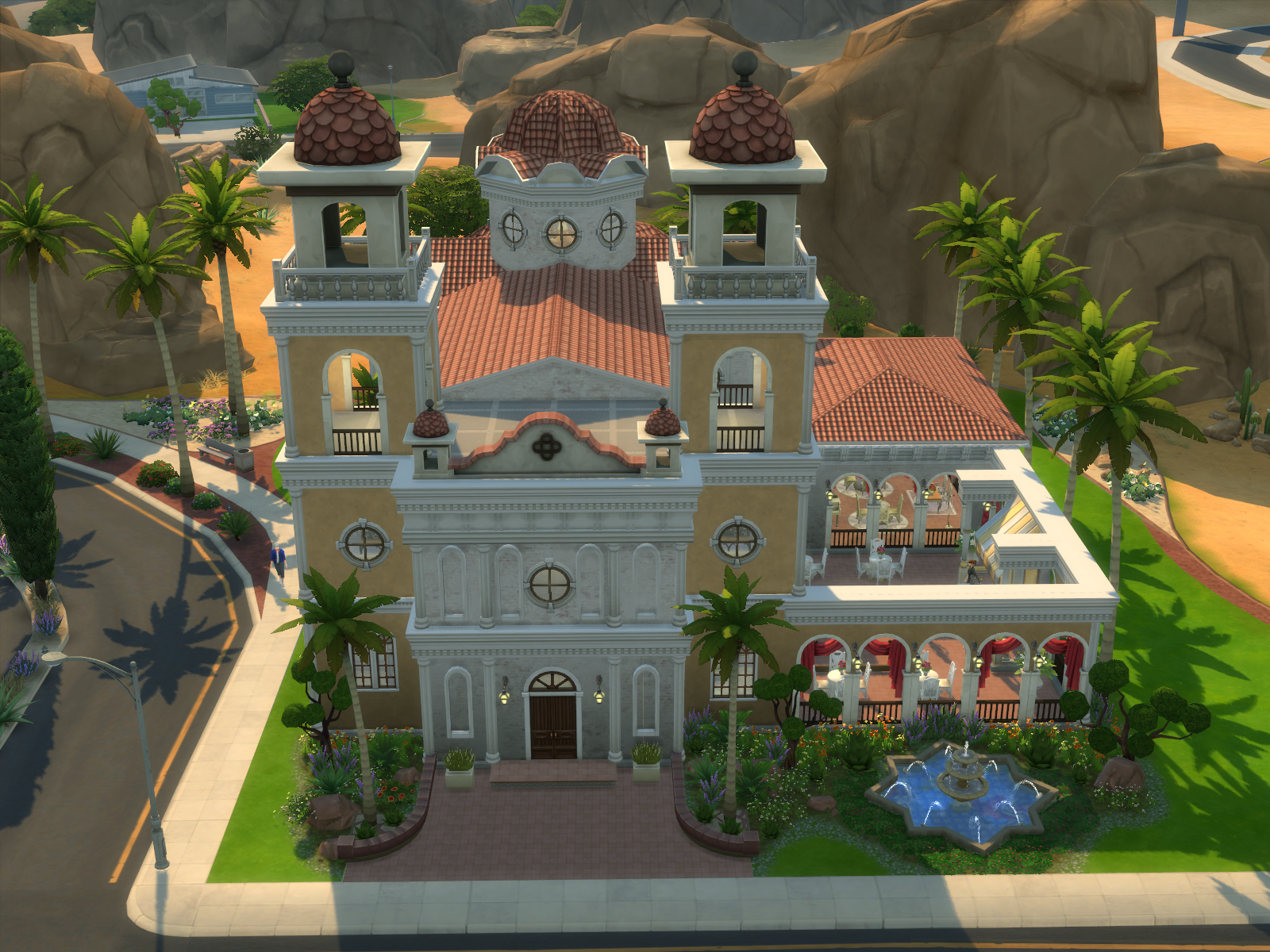 Jako pierwszą zaprezentuję Wam katedrę autorstwa Fischio7. Budynek przypomina świątynię, a w rzeczywistości jest eleganckim klubem. Aby umieścić parcelę w grze musicie przejść do trybu edycji miasta lub udać się na parcelę o wymiarach 40×30 i przejść do trybu budowania. Aby pobrać parcelę nie musicie posiadać żadnego rozszerzenia do gry.