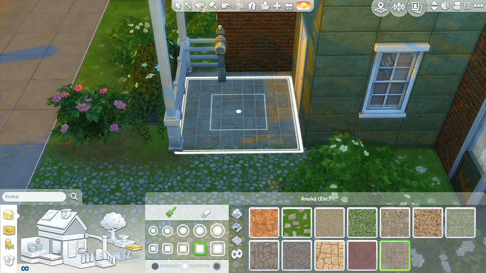 Aby oszczędzić na betonowych płytach wokół domu, lepiej bedzie pomalować teren, to także jest za darmo. Jeżeli ktoś ma talent do malowania myszą, może stworzyć wizualnie coś co pozwoli nam zapomnieć, że to starter. Jeżeli chodzi o rośliny, to polecam wybierać najtańsze i powiękaszać (Shift+]), takie rozwiązanie upiększa otoczenie.