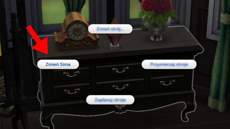 W dowolnym momencie możemy edytować naszego Sima w Stwórz Sima. Wystarczy kliknąć na szafę lub lustro i wybrać opcję "Zmień Sima". Pozwoli to na edycję strojów oraz bardziej szczegółowych ustawień – jak nowe opcje płci czy dobór głosu i masy ciała.