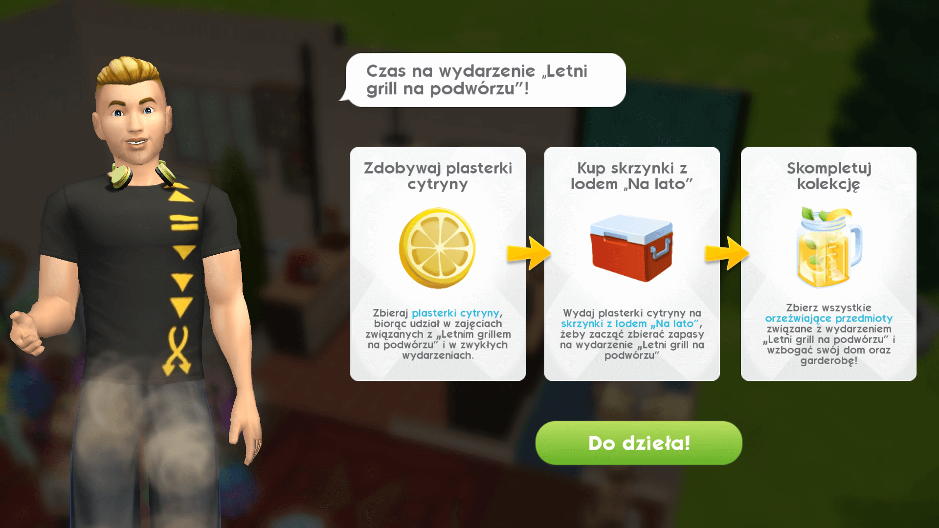 Już po włączeniu gry zobaczycie letnie wyzwanie związane z grillowaniem, które jest bardzo podobne do innych czasowych wydarzeń z wcześniejszych wersji gry. Za wykonywanie określonych celów otrzymujemy plastry cytryny, które są walutą podczas trwania tej zabawy. Wykorzystując je możemy zakupić skrzynkę, która da nam potencjalnie nowy przedmiot. Nowy zestaw mebli na patio jest dostępny w trybie budowania po osiągnięciu przynajmniej 19. poziomu.