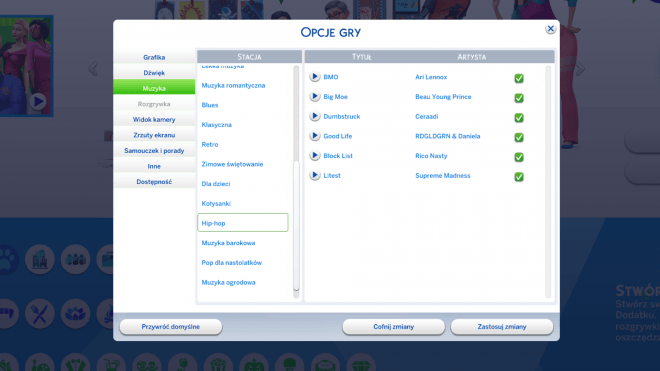 Od teraz w grze dostępna jest nowa stacja muzyczna – Hip-hop. Wersje swoich piosenek w Simlish wykonują tacy artyści jak: Ari Lennox, Rico Nasty czy Supreme Madness
