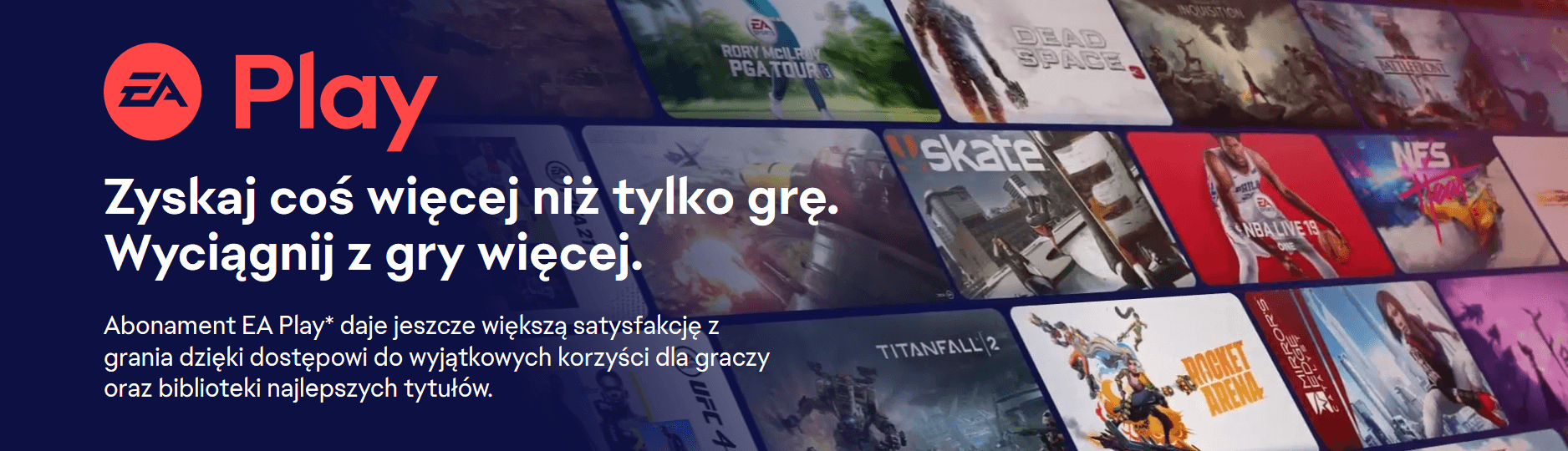 EA Play to oparta na subskrypcji usługa gier wideo firmy Electronic Arts na komputery oraz konsole PlayStation 4 i Xbox One. Na komputerach oferta jest dostępna na platformach Origin i Steam. Oferuje ona po zapłacie dostęp do wszystkich wybranych gier wydanych przez Electronic Arts bez dodatkowych opłat wraz z dodatkowymi zachętami. W ramach oferty do wyboru mamy dwa abonamenty: EA Play oraz wersję Pro dostępną jedynie poprzez Origin. Jest to idealne rozwiązanie dla fanów gier, którzy nie lubią się ograniczać i nie chcą wydawać dużych pieniędzy na zdobycie interesujących produktów.