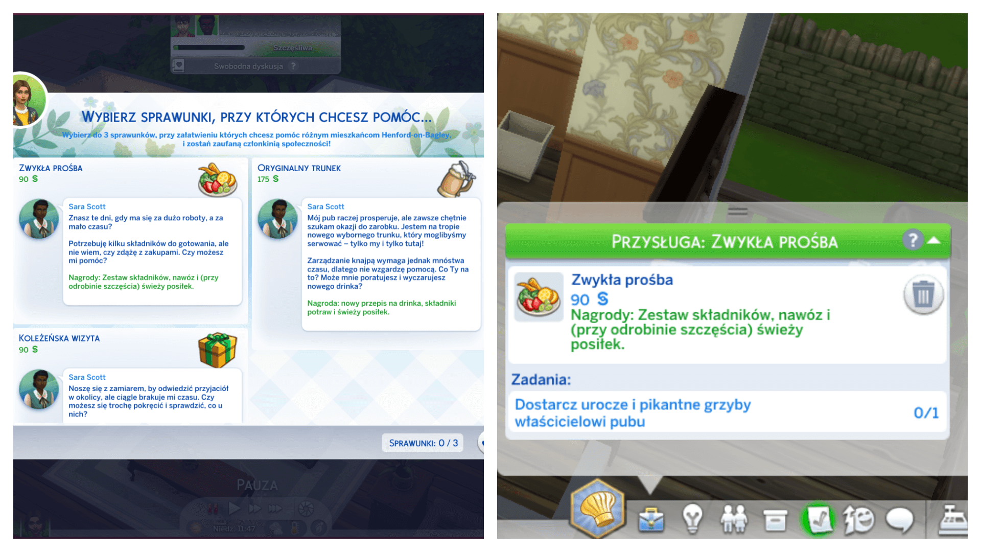 Największą nowością w kwestiach społecznych między Simami, jaką dodaje dodatek, jest system sprawunków, które można wykonywać dla naszych sąsiadów. Przypominają one prace dorywcze z The Sims 4 Wyspiarskie życie i dzięki nim możemy poprawić nasze relację z mieszkańcami wsi, nieco zarobić oraz otrzymać ciekawe obiekty czy produkty. Sprawunków jest naprawdę sporo i dotyczą różnych dziedzin. Od wyhodowania specjalnej rośliny, po odwiedzenie starych znajomych danego sima czy wyhodowanie konkretnego koloru wełny. Do wyboru do koloru!