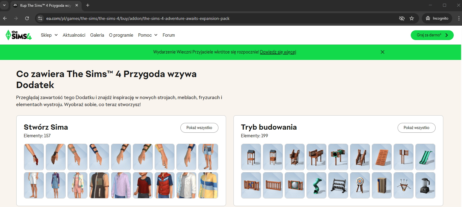 Po aktualizacji gry The Sims 4, która pojawiła się 18 września, oficjalne sklepy cyfrowe zaktualizowały swoje oferty dotyczące nadchodzącego dodatku. Dzięki temu gracze mogą teraz zapoznać się z pełnym katalogiem obiektów, które trafią do gry wraz z The Sims 4 Przygoda wzywa. Premiera rozszerzenia zaplanowana jest na 2 października 2025 roku.