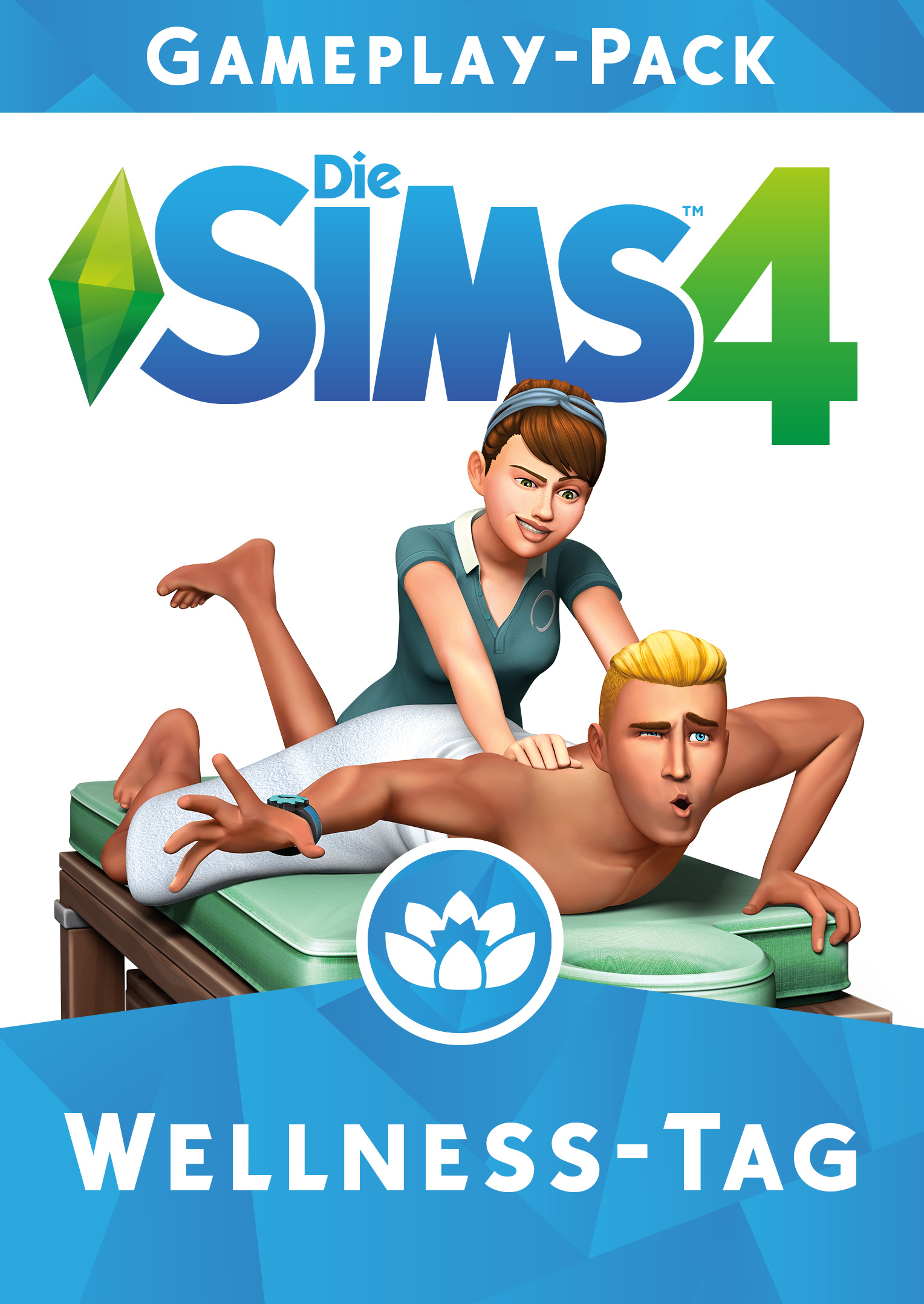 Niemiecki serwer z materiałami promocyjnymi, wzbogacony został o nowe grafiki z gry The Sims 4: Dzień w Spa. Dokładniej, mowa tutaj o logo oraz okładce pakietu. Kolejną ikonką w naszej kolekcji będzie kwiat lotosu na niebieskim tle. Wszystko wskazuje na to, iż pakiety rozgrywki będą trzymały się koloru niebieskiego, akcesoria natomiast – zielonego. Mam cichą nadzieję, że kolory i logo dodatków będą się zmieniać.