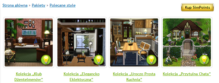 Na stronie TheSims3.com w The Sims 3 Sklep pojawiła się nowa kategoria zestawów – Polecane zestawy. W tym dziale znajdują się zestawy stworzone z różnych elementów dostępnych w Sklepie. Twórcy pokazują Wam, jakie efekty możecie uzyskać poprzez połączenie różnych obiektów z dostępnych zestawów. W sposób połączenia różnych elementów powstały zestawy: Przytulna Chata, Uroczo Prosta Kuchnia, Elegancko Eklektyczna oraz Klub Dżentelmenów. Podoba się Wam taki pomysł? 🙂