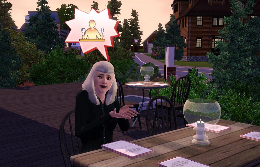 Producent Alan Copeland opublikował zdjęcie, na którym możemy zobaczyć głodną Simkę, która siedzi przy stoliku. Co ciekawe, na stolikach widać karty z menu. Zdjęcie zostało podpisane: "Czy to pora lunchu?". Wcześniej mogliśmy zobaczyć prawdopodobny sklep meblowy, a teraz restaurację. Czyżby szykował się całkiem niezły pakiet do The Sims 3 Sklep? 🙂
