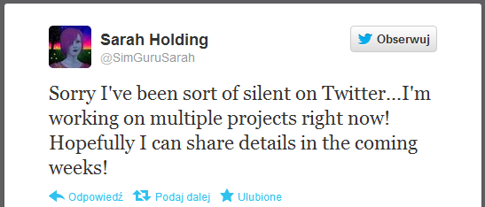 SimGuruSarah czyli Sarah Holding, producentka gry The Sims 3 napisała w serwisie społecznościowym twitter ciekawą wiadomość.